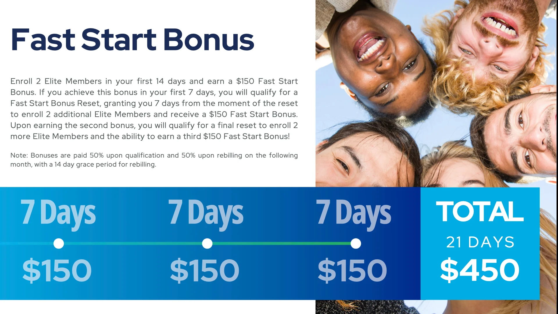 B) Continue below to review the Fast Start Bonus and your next steps toward success.